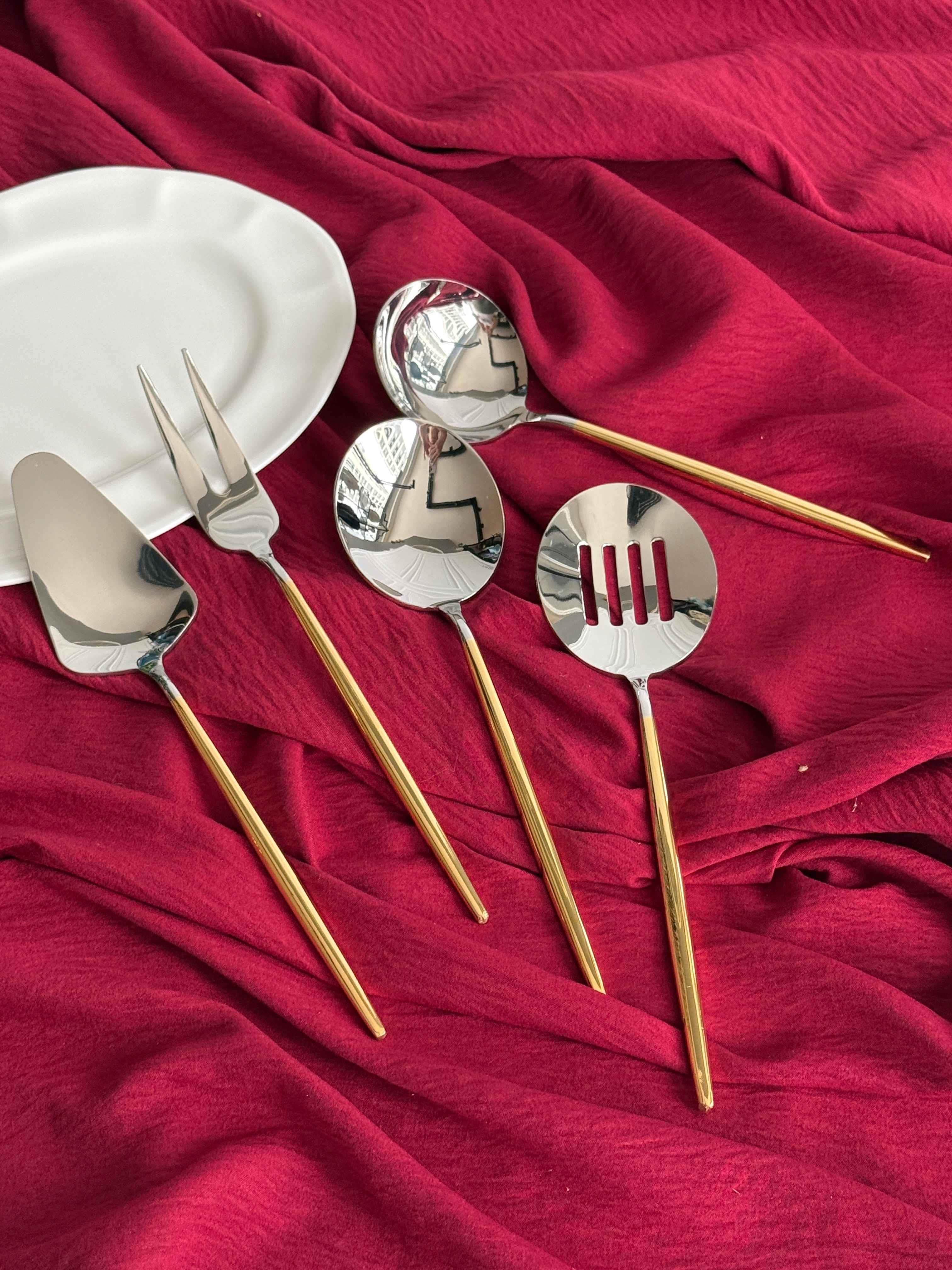 1 Adet Spatula (22cm)Adet Servis Çatalı1 Adet Servis Kaşığı1 Adet Delikli Kaşık 1 Adet Kepçe