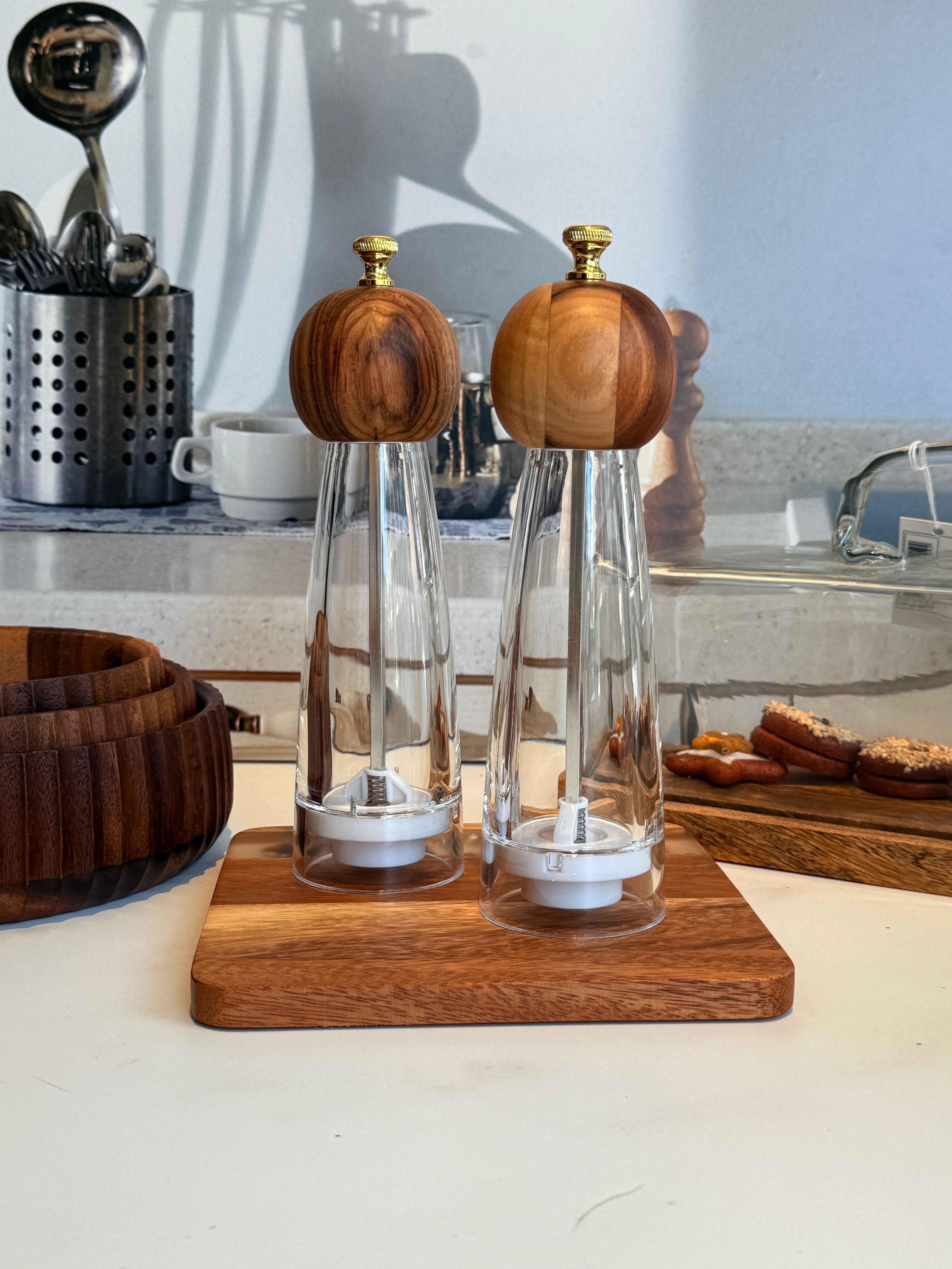 Bambu Tuzluk-Karabiber Değirmeni 2 'Li Mutfakta hem işlevselliğe hem de estetiğe önem verenler için tasarlanmış bu zarif biber ve tuz değirmeni, doğal bambu kapağı ve şeffaf akrilik gövdesiyle hem modern hem de doğal bir görünüm sunar. Baharatlarınızı taze taze öğütmenin en şık yolu!