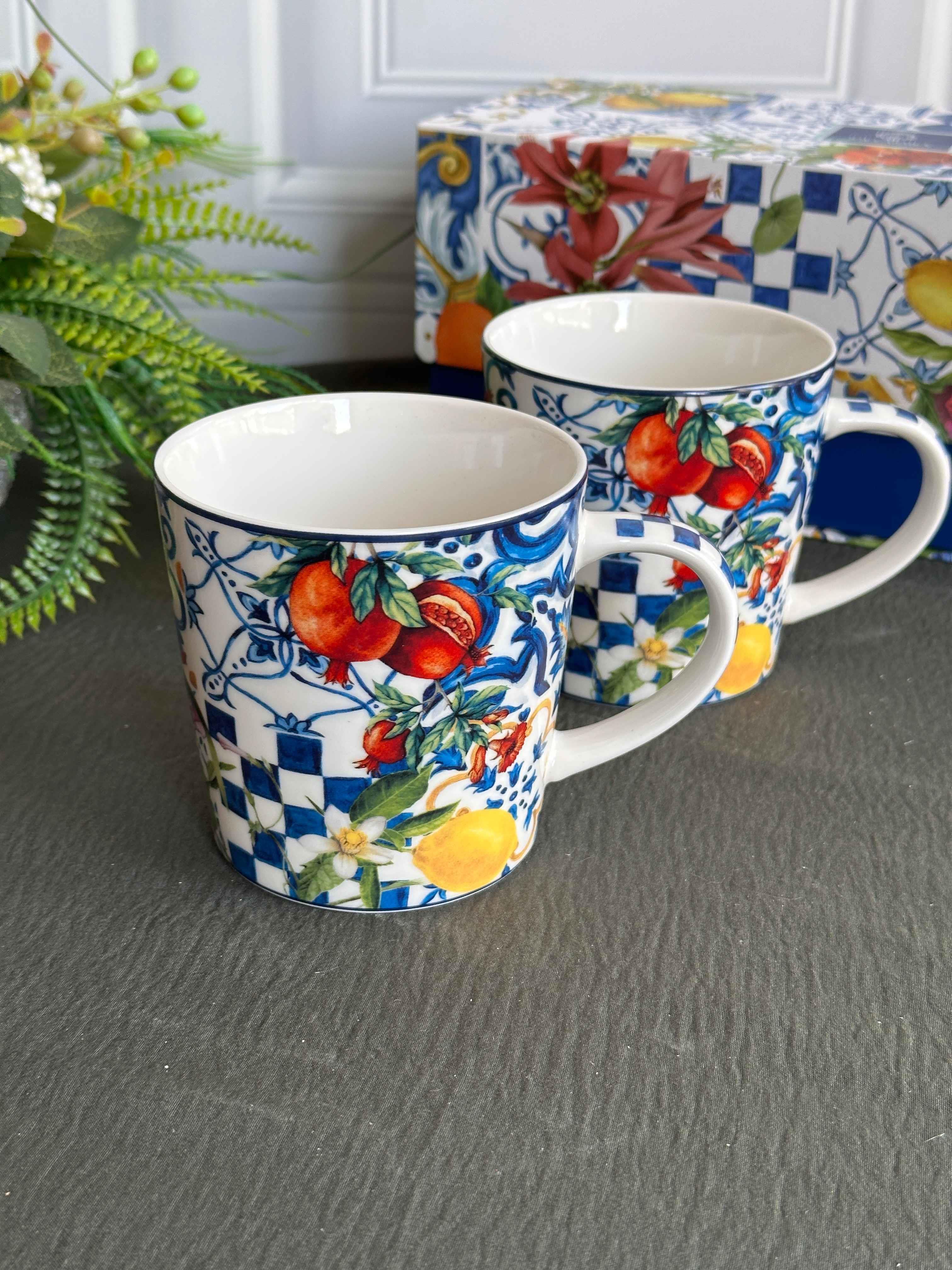 Beyaz-lacivert dama etnik desenleri , nar limon ve çiçek motifleti ile zenginleştirilmiş özel kupalar sofralarınıza modern hava katıyor. Yüksek kaliteli porselenden üretilmiş, 350 ml hacme sahip bu kupalar hem çay hem de kahve keyfinizi daha da özel kılar.