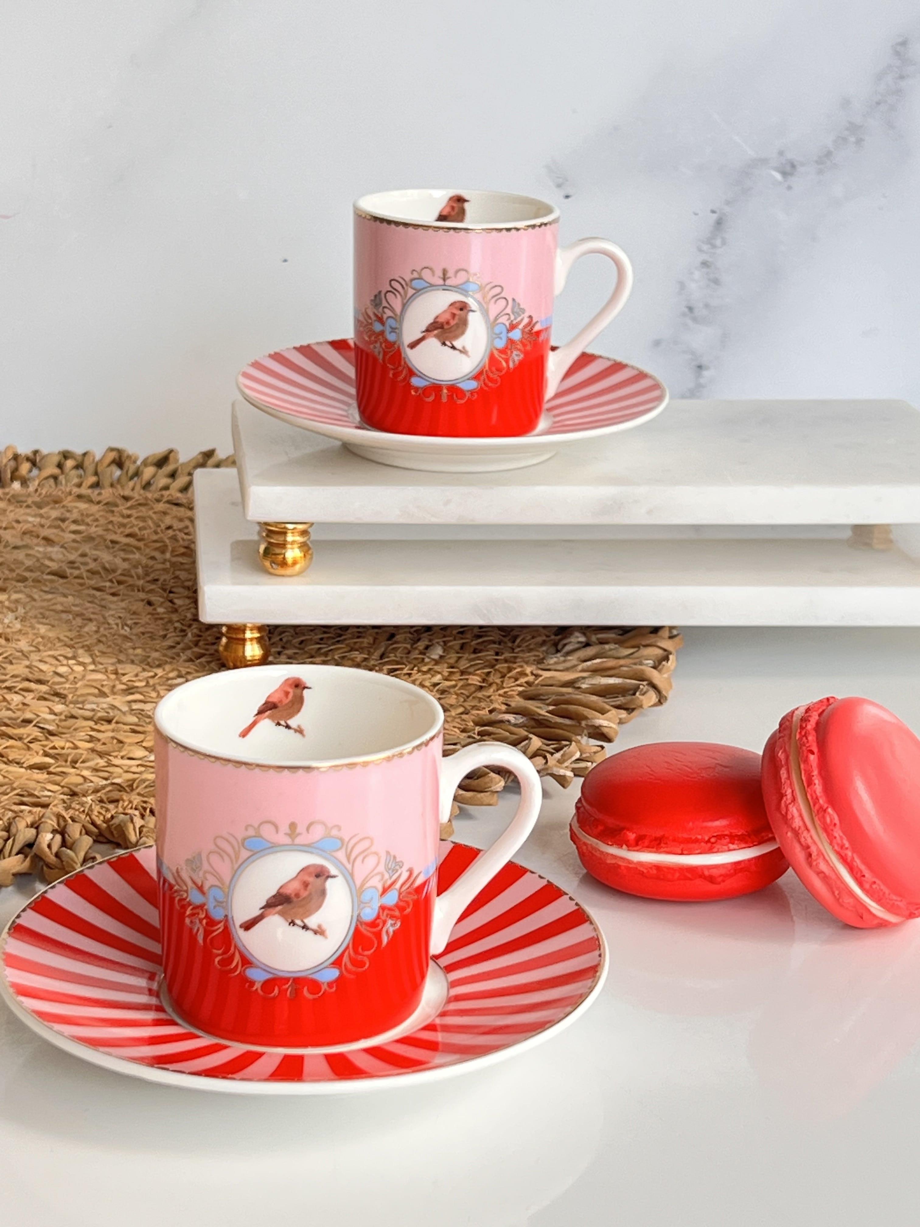 Türk Kahve Fincanı Bird Pink 2 Kişilik 4 Parça
