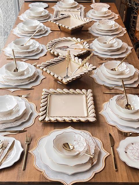 Set İçeriği:12 Adet Servis Tabak (26cm)12 Adet Yemek Tabak (19cm)12 Adet Pasta Tabak (21cm)12 Adet Çorba Kasesi (13cm)12 Adet Yemek Kaşık12 Adet Yemek Çatal12 Adet Yemek Bıçak12 Adet Tatlı Kaşık12 Adet Tatlı Çatal12 Adet Tatlı Bıçak12 Adet Çay Kaşık2 Adet Kare Sunum Tabak ( 30Cm)2 Adet Kare Salata Kasesi ( 28*10Cm)1 Adet Yuvarlak Sunum Tabak (31cm)5 Parça Servis Kaşık Seti