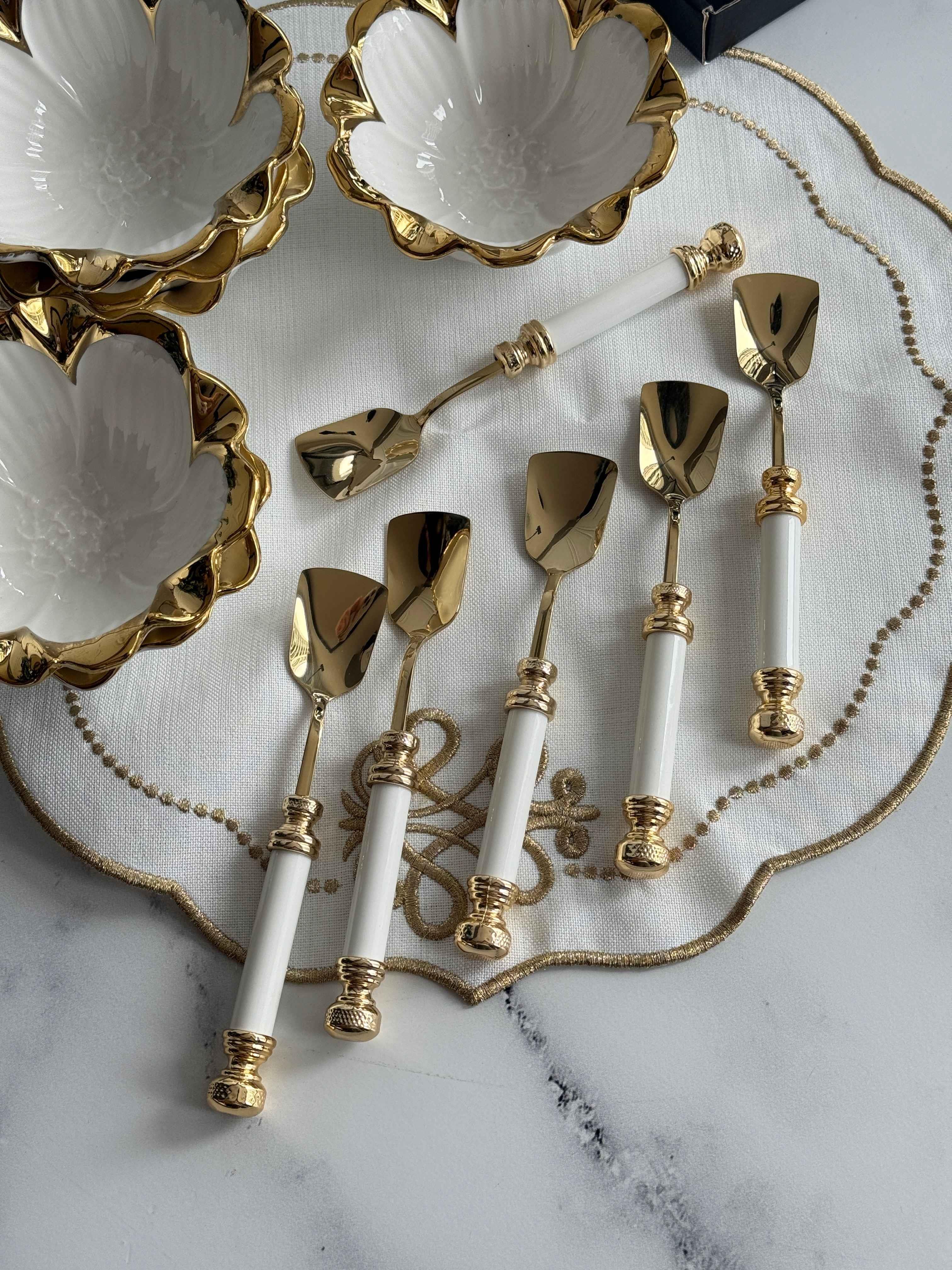 Modern ve klasik çizgilerin buluştuğu bu gold dondurma kaşık seti, sofranızda fark yaratmak isteyenler için tasarlandı. Şıklığı detaylarda arayanların favorisi olacak!