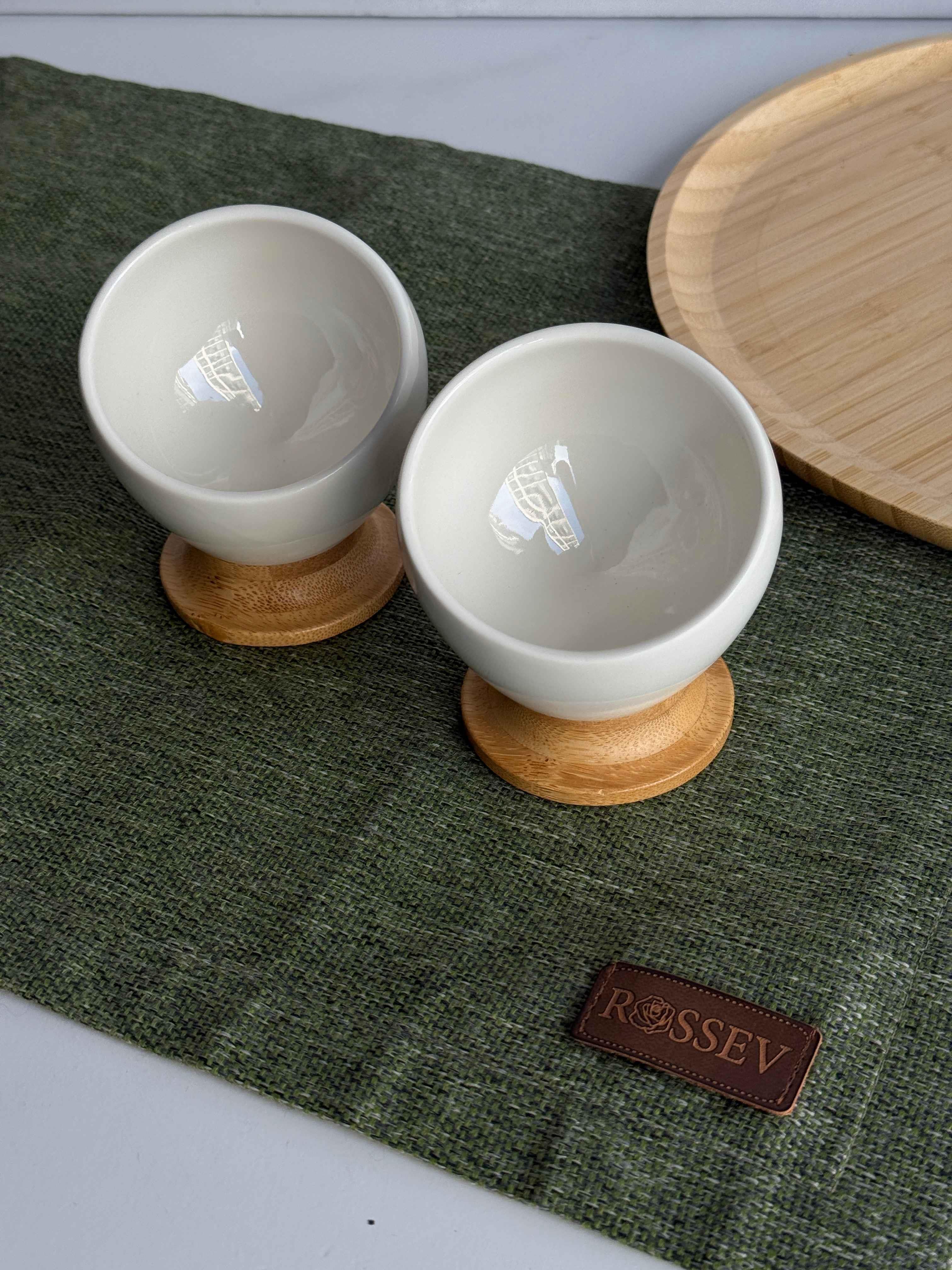 Set içerik: 2 Adet Bambu Sosluk(6x8cm) Materyal: 1. Kalite Porselen & Doğal Bambu