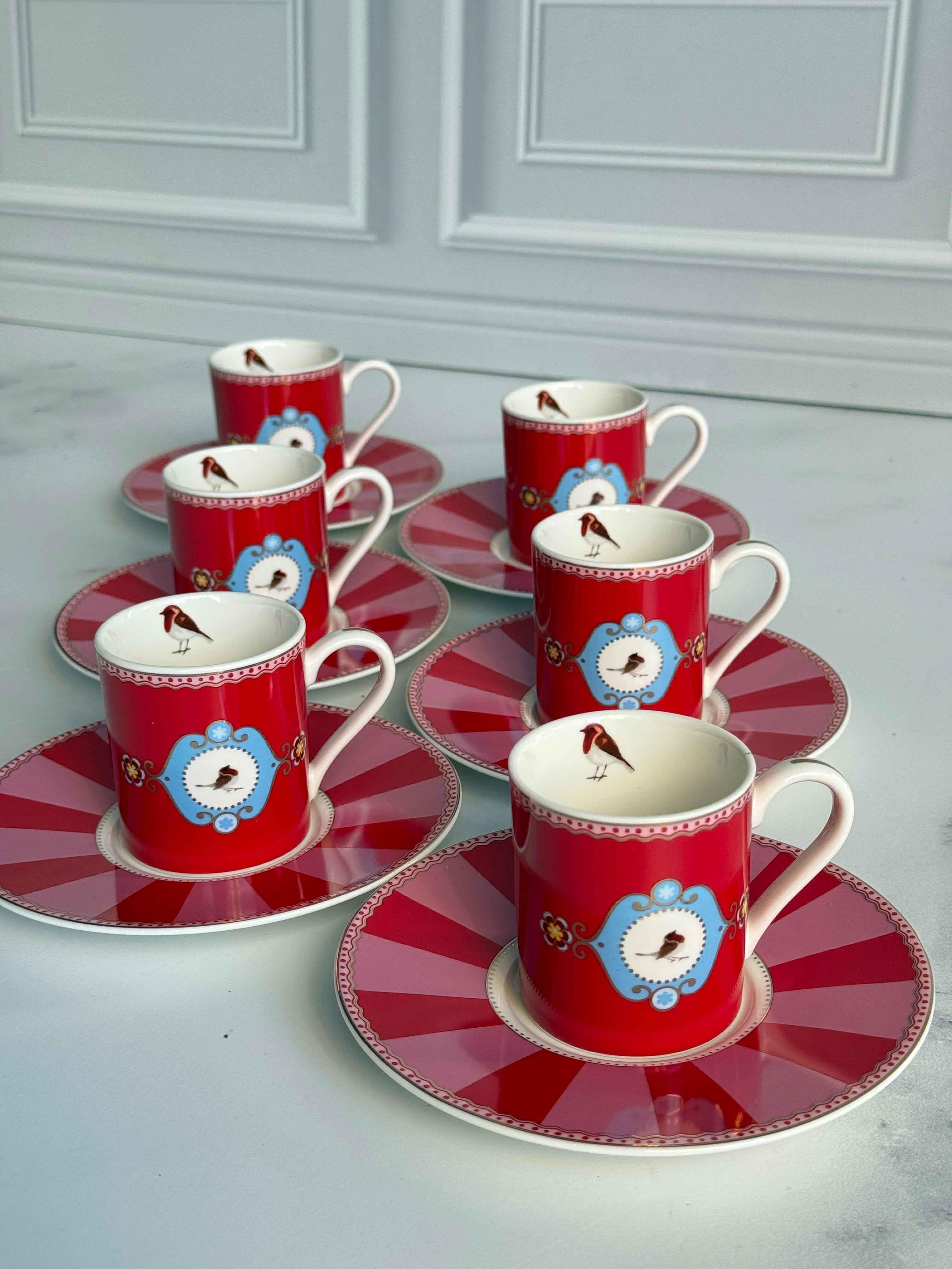 Türk Kahve Fincanı Birdy Red 6 Kişilik 12 Parça